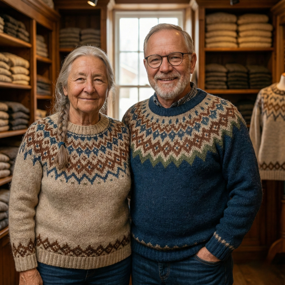 Since 1957, our family has been passionate about Icelandic craftsmanship. What began with my grandparents has grown into a workshop where every sweater is made with care, love, and attention to detail.